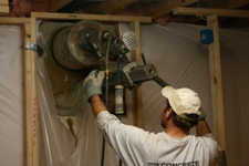 required we bore a hole in the basement wall. Concrete